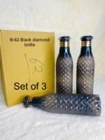 The B-62 Black Diamond Bottle Set of 3 features a sleek, diamond-textured design with a bold black finish. These premium bottles are perfect for storing water or beverages in style at home, office, or on the go.