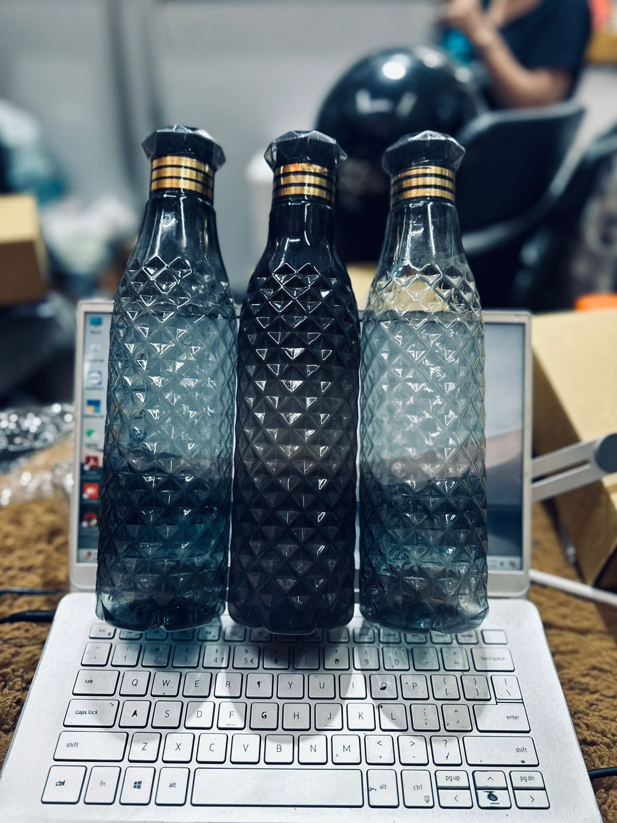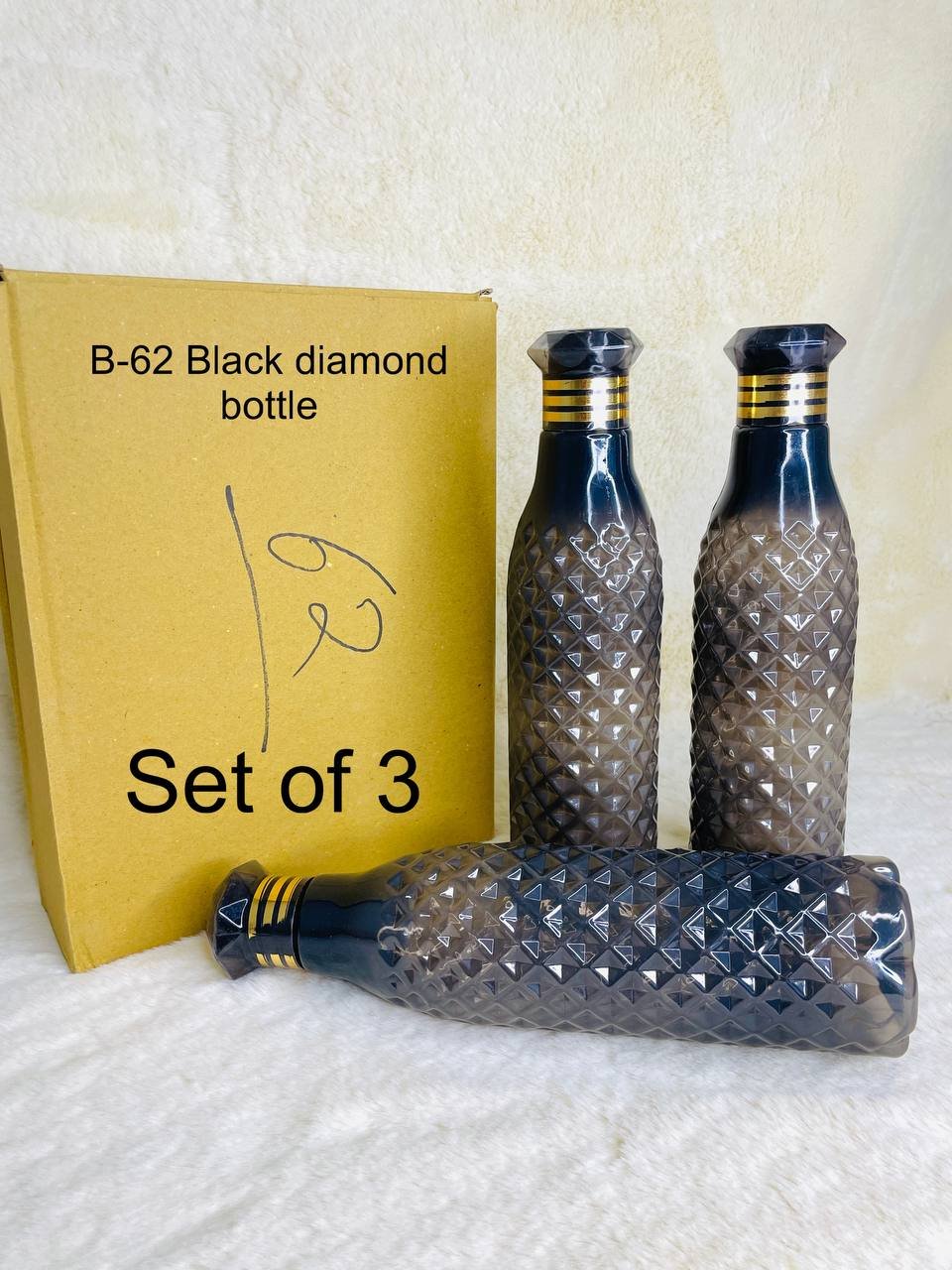 The B-62 Black Diamond Bottle Set of 3 features a sleek, diamond-textured design with a bold black finish. These premium bottles are perfect for storing water or beverages in style at home, office, or on the go.