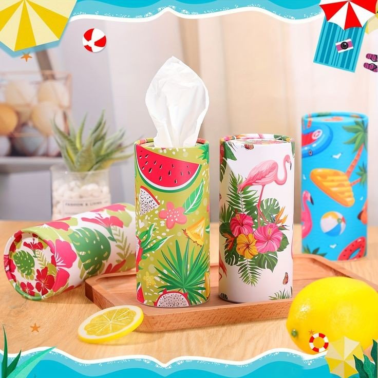 A Cylinder Paper Tissue Box (Imported) is a stylish and functional accessory designed to hold tissues in a compact, cylindrical container. These tissue boxes are particularly popular for their space-saving design, making them ideal for use in cars, offices, or small living spaces.