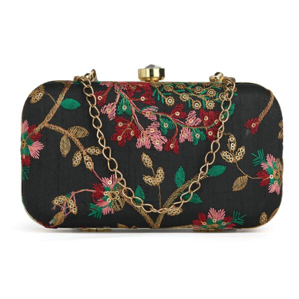 Pink & Goldembroidered box clutches Has shoulder strap, 1 main compartment with twist closure