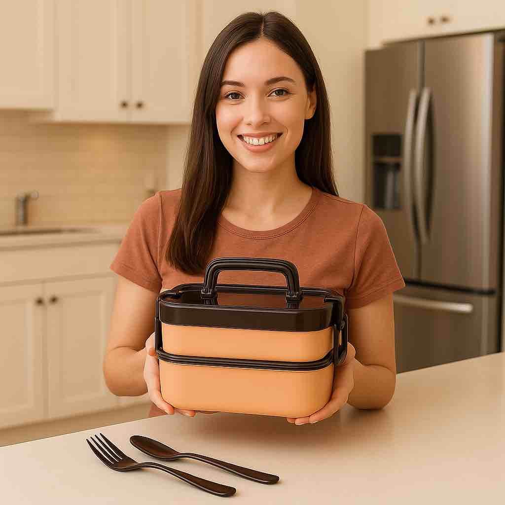 Brings convenience and style to your meals with its stackable two-tier design. Offering generous capacity and smart organization, it keeps dishes separate, fresh, and mess-free. With sturdy handles and airtight lids, it?s perfect for work, school, picnics, or travel?combining practicality with a sleek, modern loo