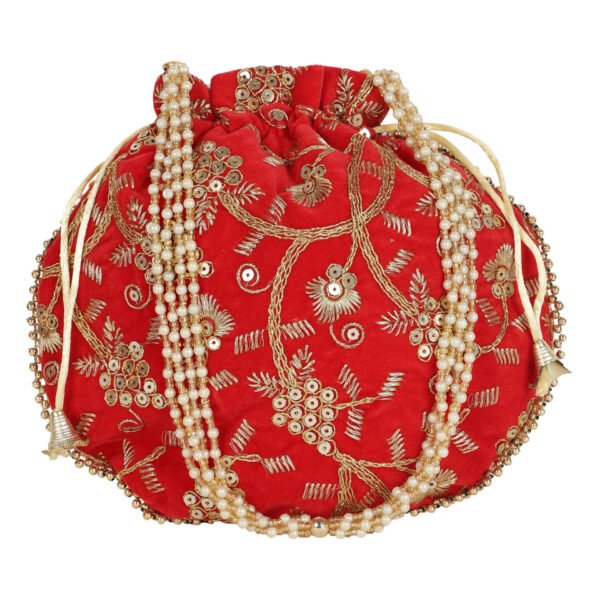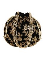 Black and gold-toned embroidered potli clutches Has wrist loop 1 main compartment with drawstring closure Size & Fit Height: Width: Depth: Material & Care Wipe with clean, dry cloth