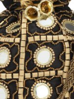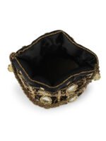 Black and gold-toned embellished potli clutches Has wrist loop 1 main compartment with drawstring closure Size & Fit Length 8Inches Depth 2Inches Width 5Inches Material & Care Fabric Wipe with clean, dry cloth