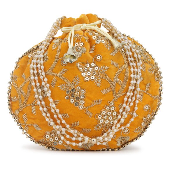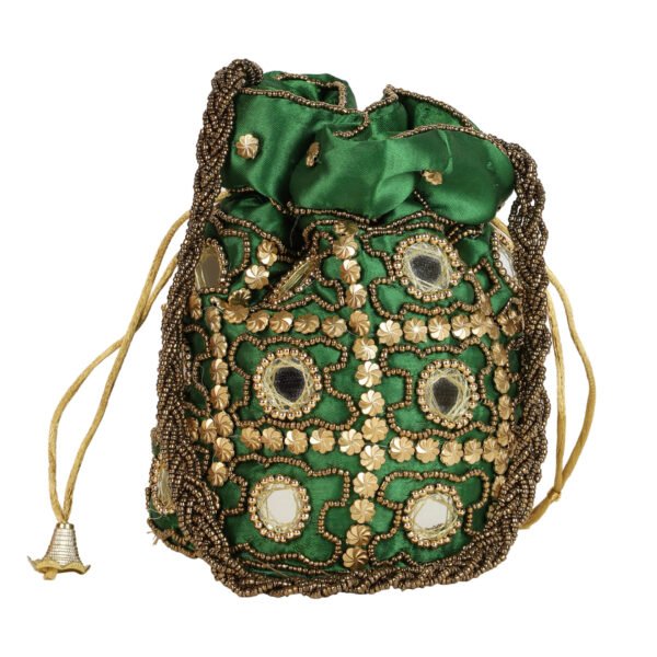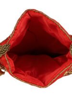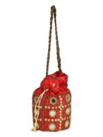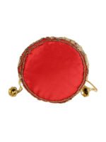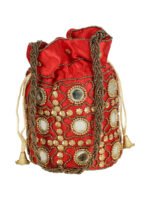 Red and gold-toned embellished potli clutches Has wrist loop 1 main compartment with drawstring closure Size & Fit Height: 18 m Width: 2 cm Depth: 10 cm Material & Care Fabric Wipe with clean, dry cloth